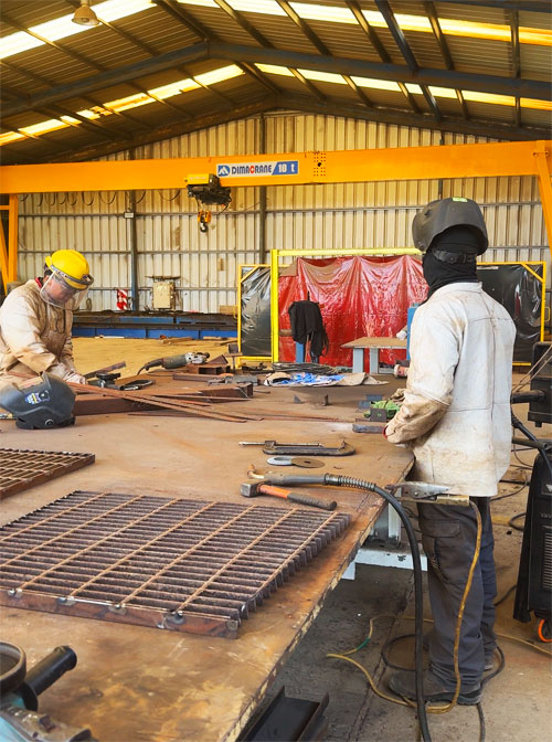 Nuestro taller de 1,000 m² opera con 2 puentes grúas y maquinaria CNC para fabricaciones industriales a gran escala.